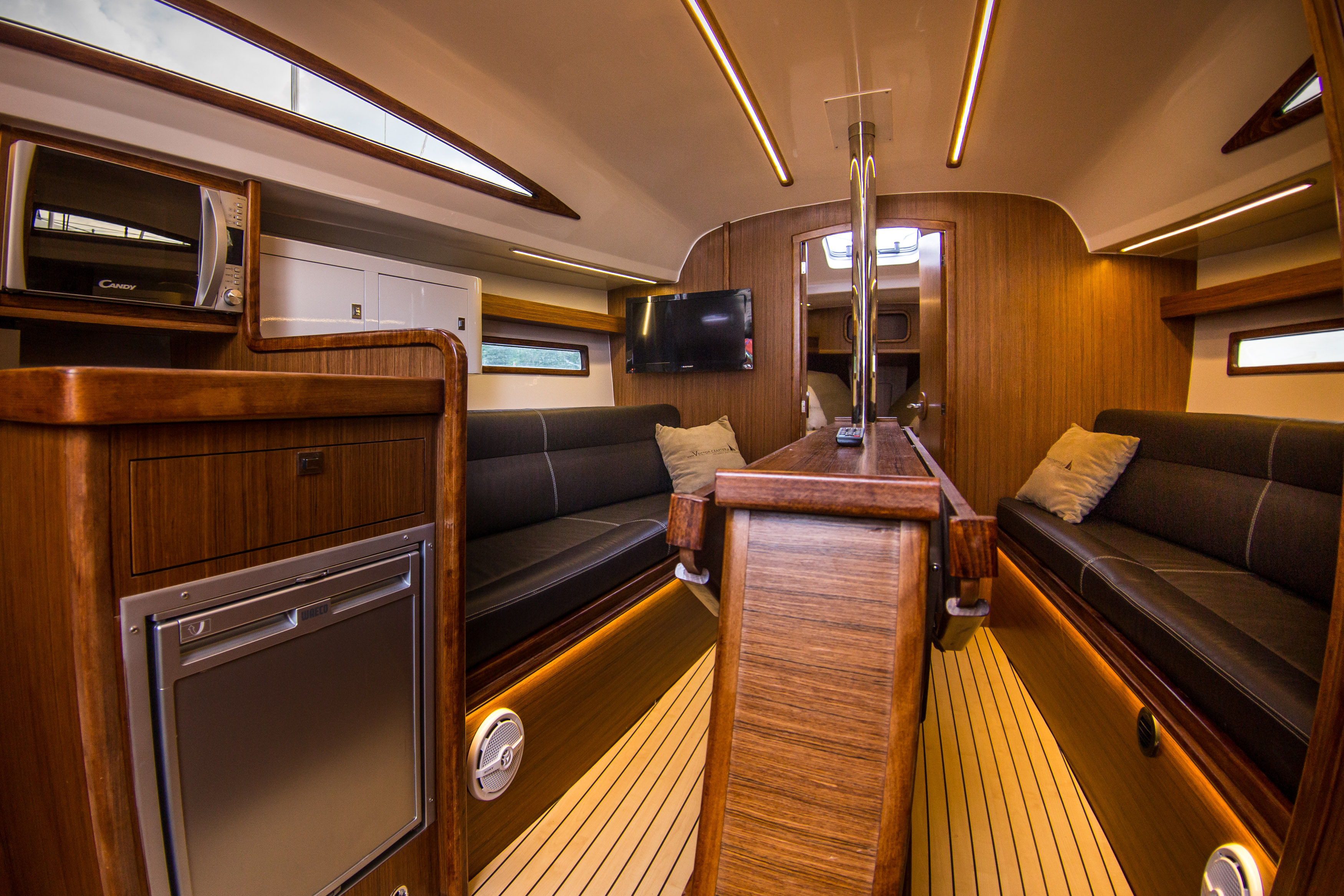 Atrakcyjna, dynamiczna sylwetka jachtu połączona z ergonomicznym ukształtowaniem pokładu oraz dopracowanymi detalami jest odzwierciedleniem dyskretnej elegancji. Podwyższona stateczność poprzeczna pozwala na zwiększenie powierzchni ożaglowania i prędkości przy słabszych wiatrach dając również poczucie komfortu i bezpieczeństwa w trudniejszych warunkach. Kształt kadłuba został zaprojektowany w sposób umożliwiający osiągnięcie wysokich prędkościoraz manewrowości i lekkości prowadzenia dające prawdziwą radość z żeglugi.
