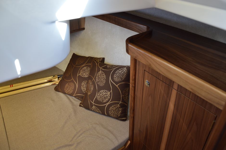 Atrakcyjna, dynamiczna sylwetka jachtu połączona z ergonomicznym ukształtowaniem pokładu oraz dopracowanymi detalami jest odzwierciedleniem dyskretnej elegancji.Podwyższona stateczność poprzeczna pozwala na zwiększenie powierzchni ożaglowania i prędkości przy słabszych wiatrach dając również poczucie komfortu i bezpieczeństwa w trudniejszych warunkach. Kształt kadłuba został zaprojektowany w sposób umożliwiający osiągnięcie wysokich prędkości oraz manewrowości i lekkości prowadzenia dające prawdziwą radość z żeglugi. Jacht został wyposażony dodatkowo w ekspress do kawy, echosonde Bidata i prysznic w kokpicie.
