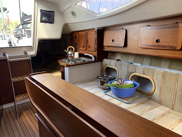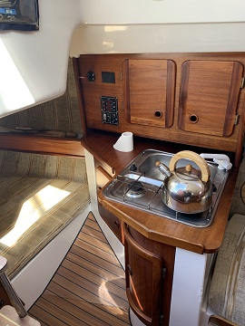 - - pełne wyposażenie kambuza tj; garnki, szklanki, sztućce na 8 osób. Miska, patelnia durszlak itp