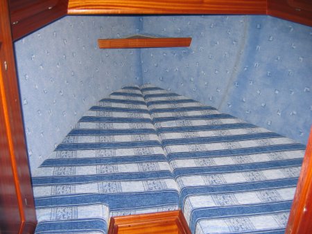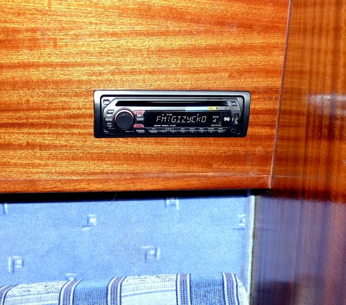 Wyposażenie dodatkowe: bramka do kladzenia masztu, sztywny sztag, lazzy jack, instalacja wody zaburtowej, prysznic, radio, CD, lodówka, ogrzewanie, oświetlenie kokpitu, oświetlenie nawigacyjne, echosonda