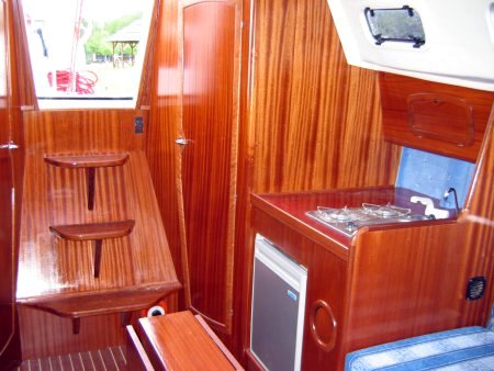 • Wyposażony w echosondę z GPS-em i koło sterowe, światła nawigacyjne, Lazy Jack, Rolfok i oczywiście patent do kładzenia masztu.